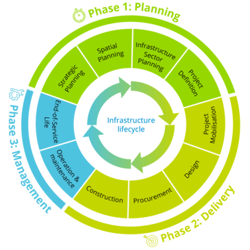 It refers to how infrastructure services, labour and materials are sustainably procured for all design, construction, operation and maintenance and service lifecycle adaptation and end-of-life stages to ensure that quality assets are delivered, managed and have a long operational life with minimal costs. It involves defining bidding documents, tender evaluation and management of contracts.